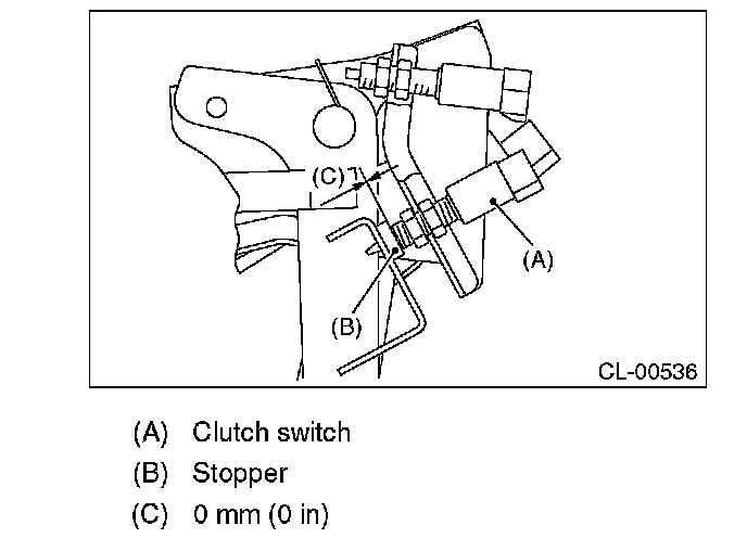 1. Install so that there is a gap of 0 mm (0 in) of the clutch switch and clutch pedal stopper.