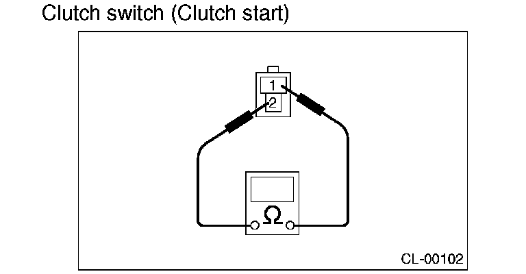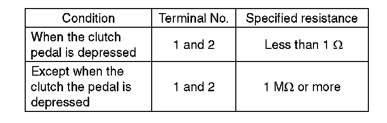 2. Make sure that the engine starts with the clutch pedal fully depressed. If the engine does not start, adjust the clutch switch and inspect the starter interlock circuit.