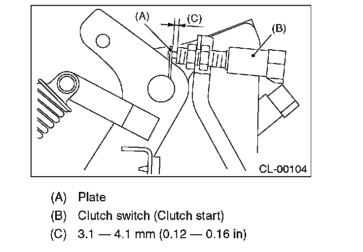 3. Adjust the gap of the clutch pedal plate and the clutch switch to be 3.1 - 4.1 mm (0.12 - 0.16 in).