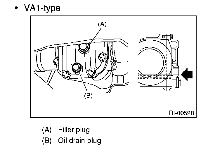 NOTE: On VA1 -types at factory settings, the oil level may be within -14 mm (-0.6 in) from the bottom of the filler plug. This is at normal level, requiring no oil refill.
