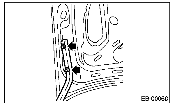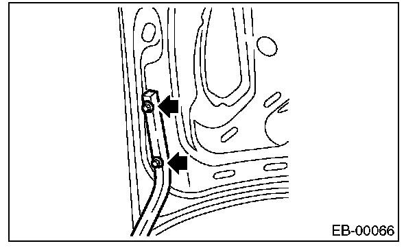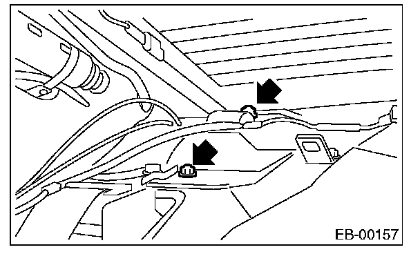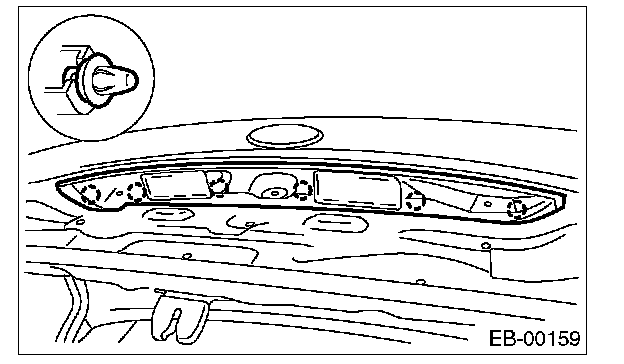 2. Open the trunk lid to remove the trunk lid trim and trunk lid arm cover. [Ref. to TRUNK ROOM TRIM, REMOVAL, Trunk Room Trim.]
