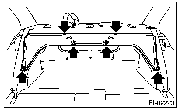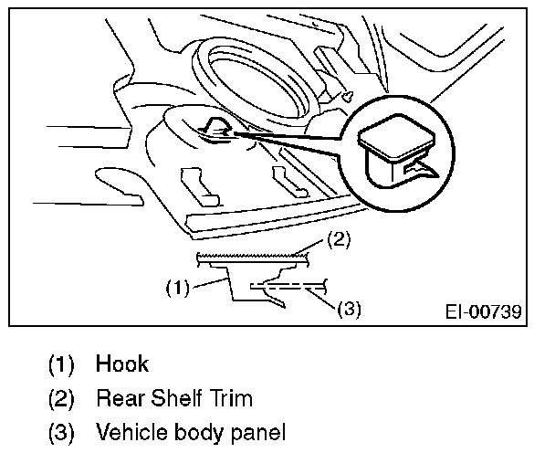 NOTE: Securely insert the vehicle body panel into the hook of the rear shelf trim center, and install the rear shelf trim.