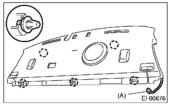 8. After disconnecting the high-mounted stop light harness connector (A) and removing the five clips, remove the rear shelf trim by pulling it frontward.