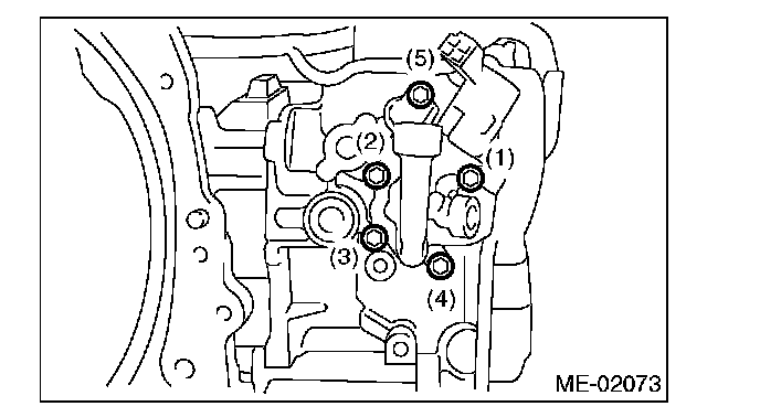 1. Temporarily tighten the bolts by tightening torque of 5 - 10 N�m (0.5 - 1.0 kgf-m, 3.7 - 7.4 ft-lb) in order shown in the figure.
