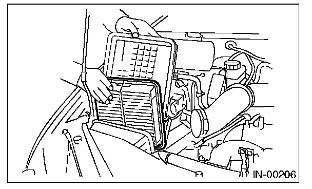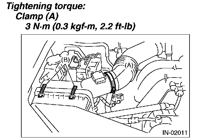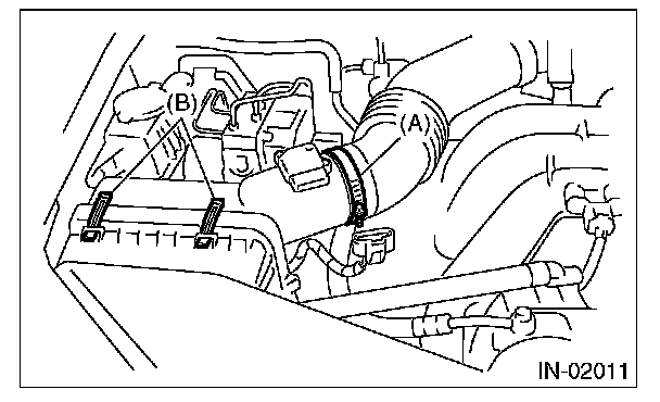 5. Remove the clip (B) securing the upper side of air cleaner case.