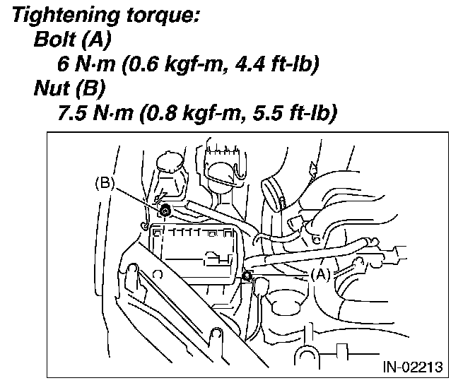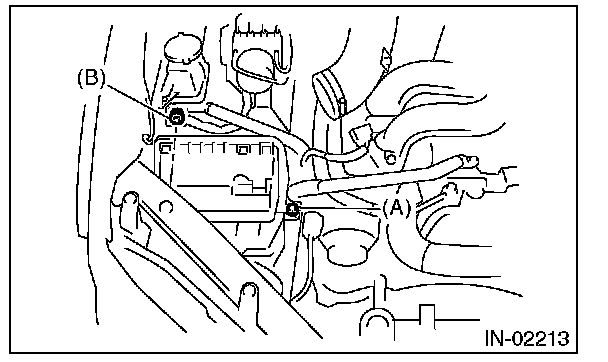 7. Remove the bolts (A) and nut (B) which secure the air cleaner case to body.