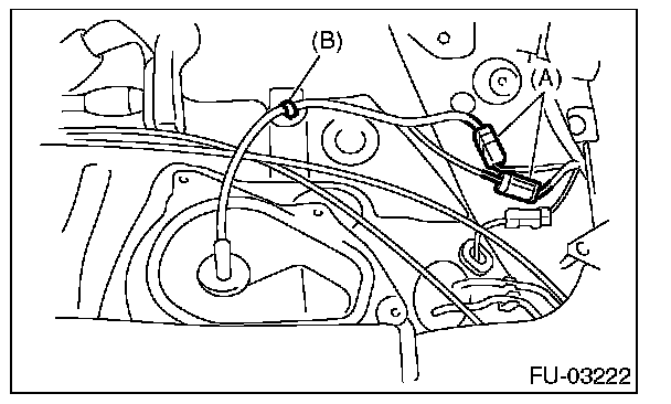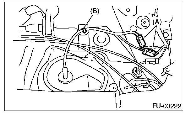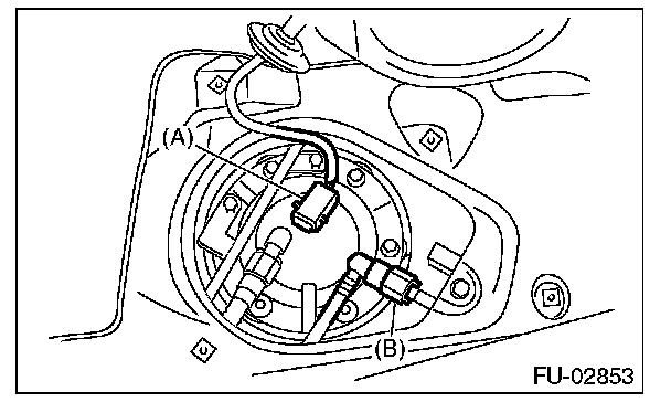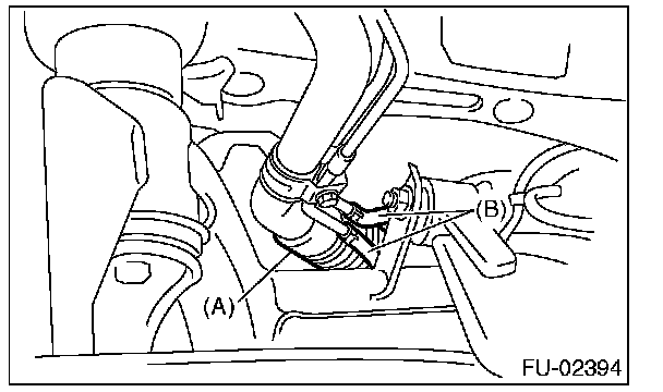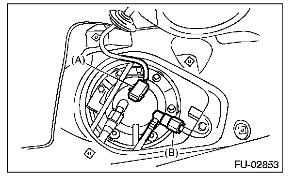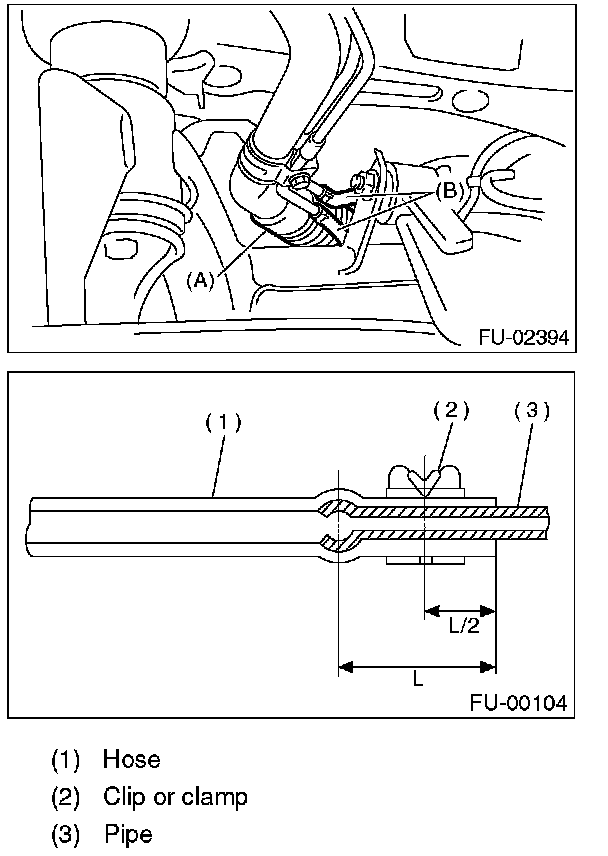 2. Securely insert the fuel filler hose (A) and evaporation hose (B) to the specified position, then tighten the clip or clamp.