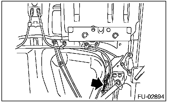 16. Tighten the bolts which secure the rear brake hose mounting bracket.