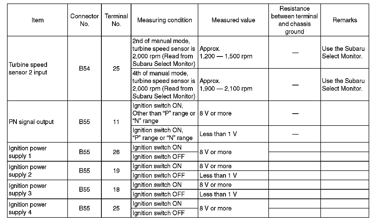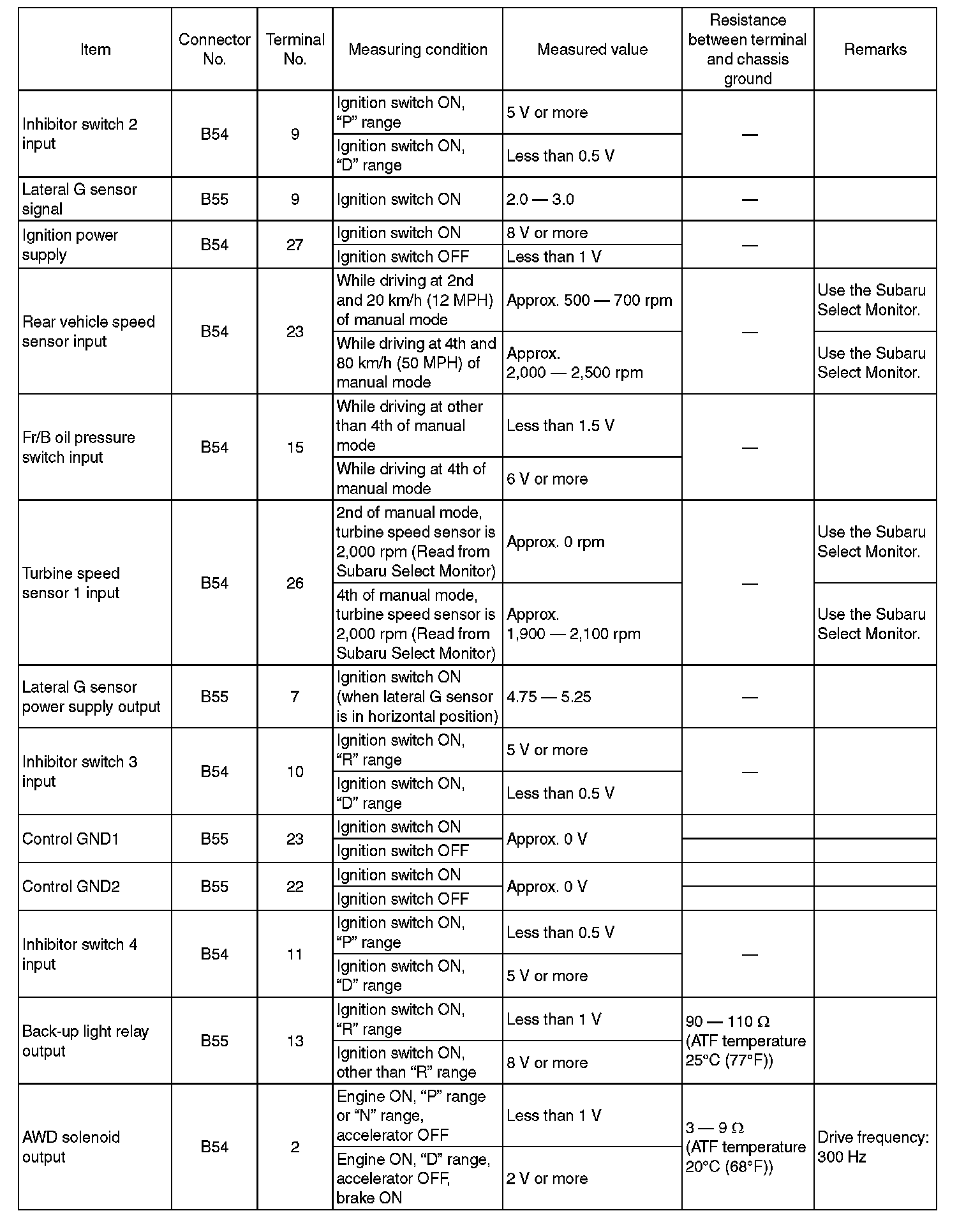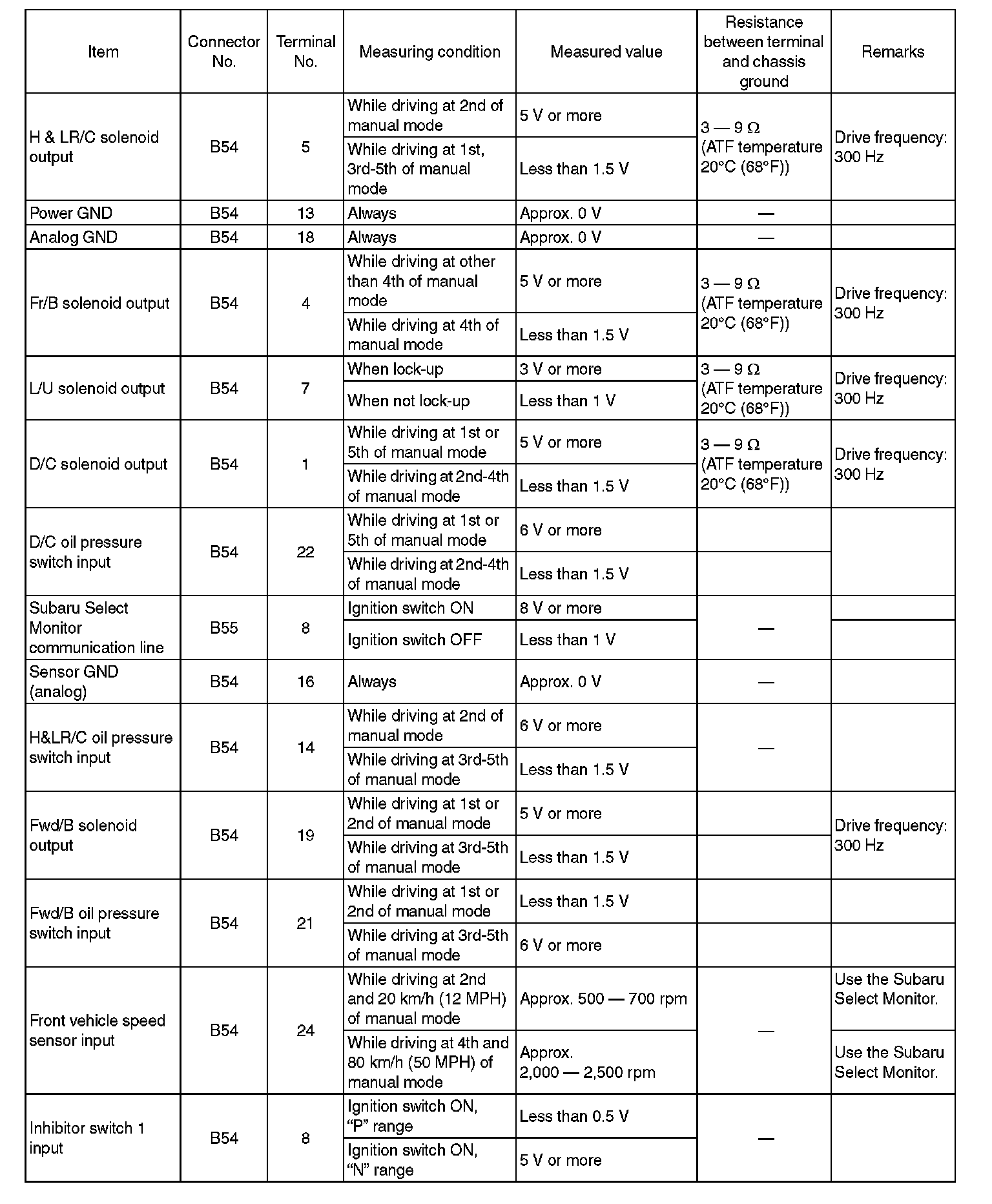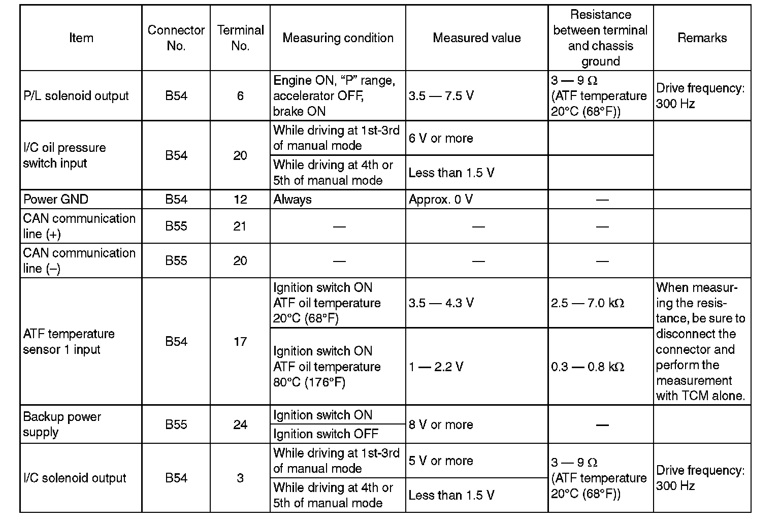 Transmission Control Module (TCM) I/O Signal