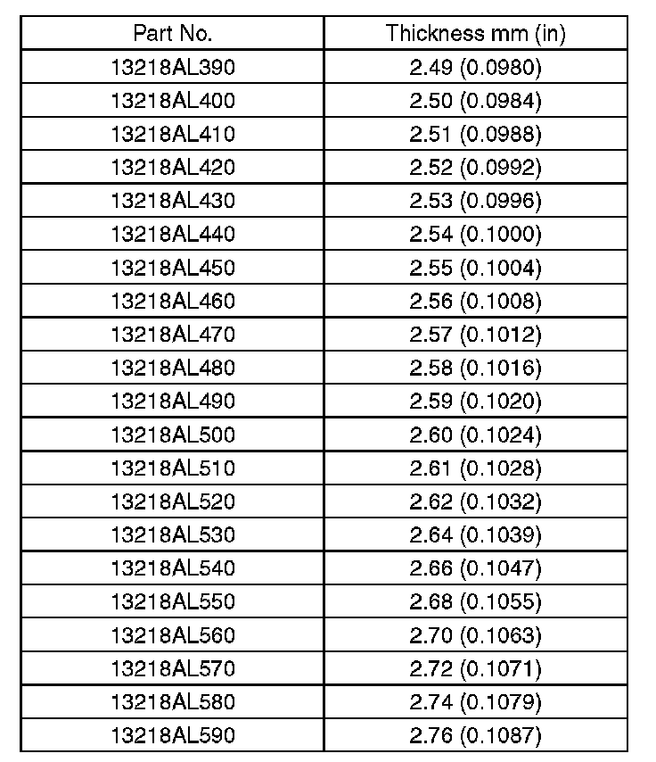 7. Check the thickness of the shim from the markings on the side of the shim that was removed.