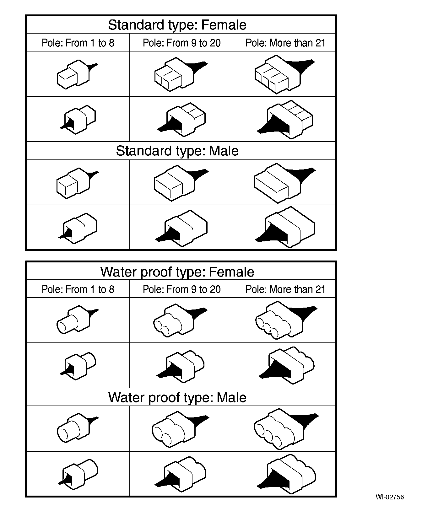 A number of connector symbols are used in each wiring diagram to easily identify the wiring harness connectors.