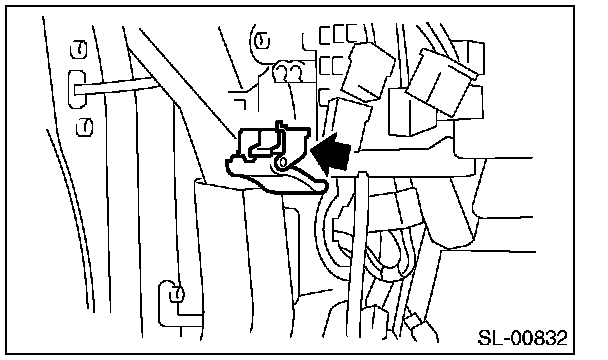 2. Remove the lower inner trim, rear quarter trim and floor mat on the driver's side. Remove the clip holding the cable.