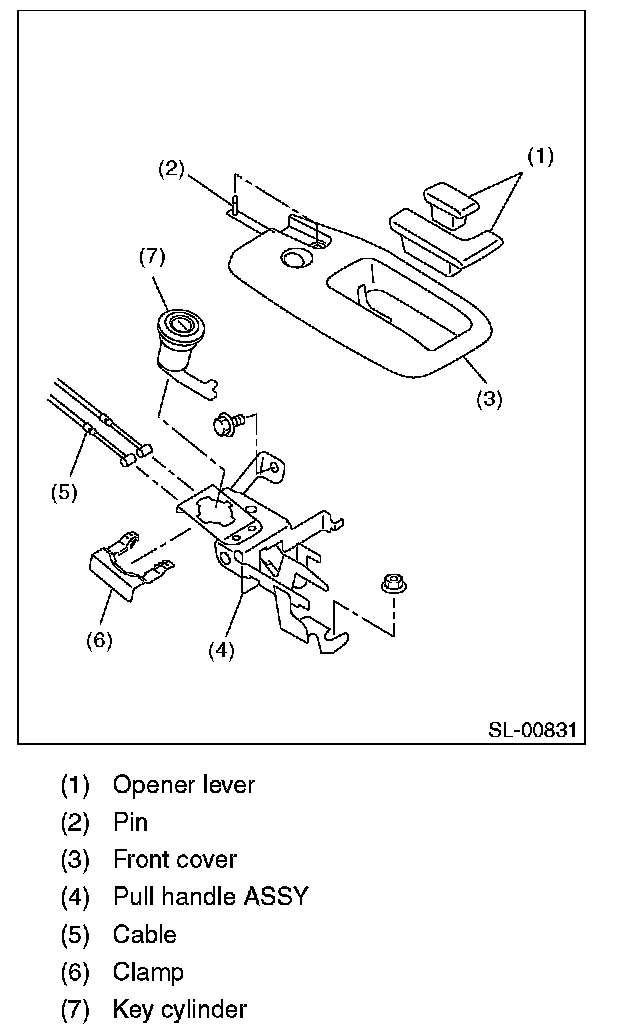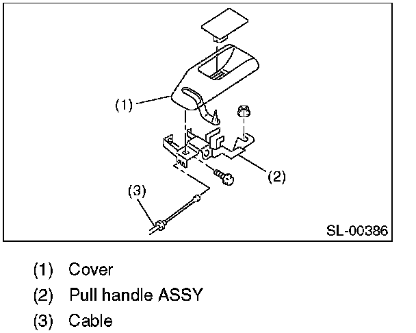 4. Remove the bolt and nut, and remove the pull handle assembly (2).