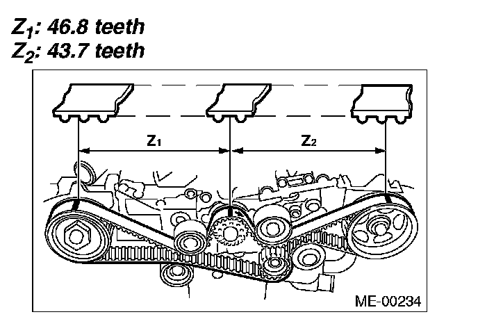 1) Check the timing belt teeth for breaks, cracks or wear. If any fault is found, replace the timing belt.