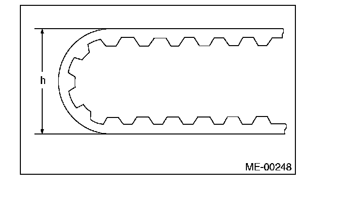 4) Measure the amount of rod protrusion "H" from the end surface of the body. If it is not within specifications, replace the automatic belt tension adjuster assembly with a new part.