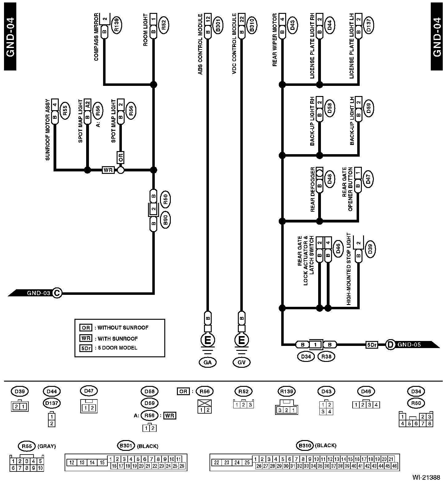 Connector and Ground Locations: The locations of the Connectors or Grounds shown within these diagrams can be found via the connector or ground number at Vehicle Locations. Locations