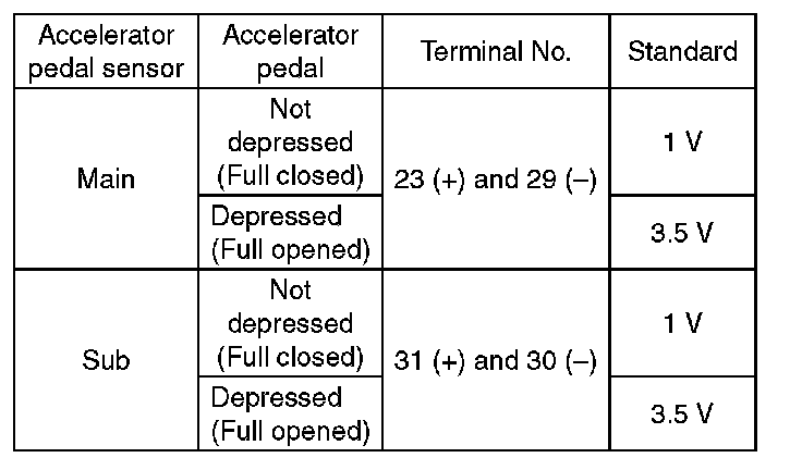 1. ACCELERATOR PEDAL SENSOR (METHOD WITH CIRCUIT TESTER)