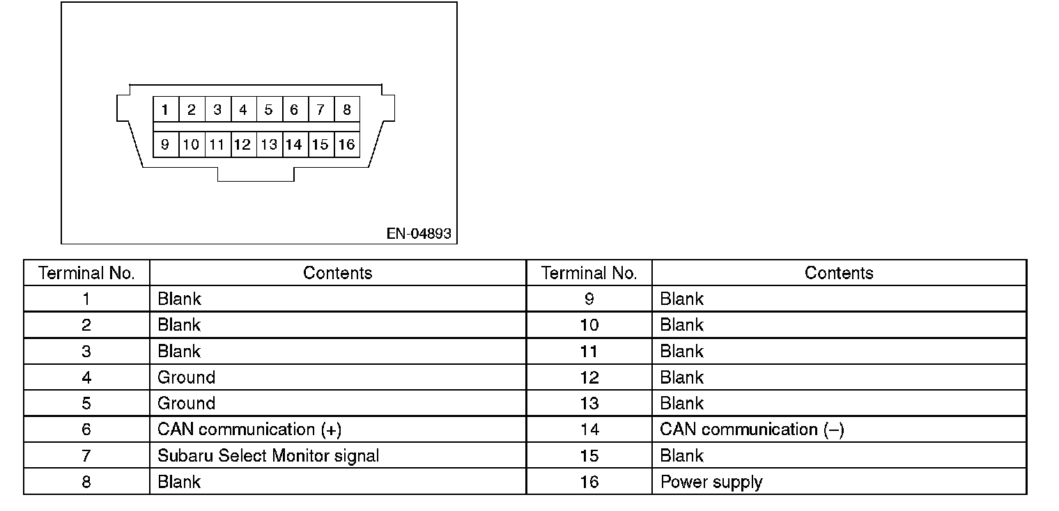 CAUTION: Do not connect any scan tools except Subaru Select Monitor or general scan tool because the circuit for Subaru Select Monitor may be damaged.