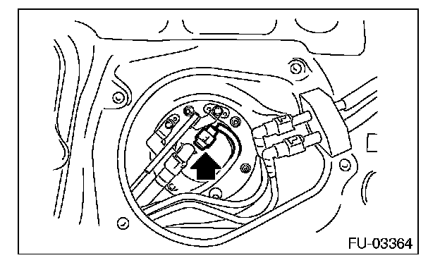 6. Disconnect the connector from the fuel sub level sensor.