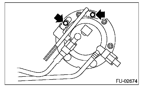 9. Remove the bolts and nuts which hold fuel sub level sensor to the fuel tank.