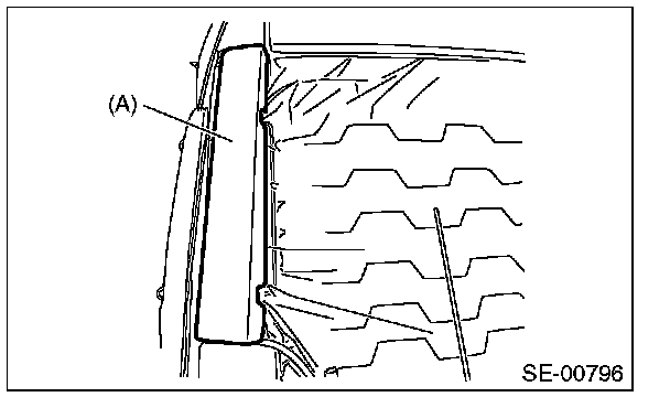 9. Remove the pad (A), and remove the mounting nut from the side airbag module.