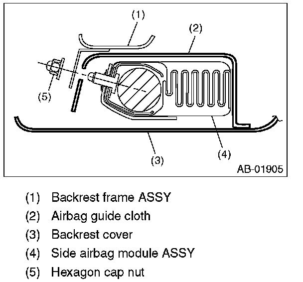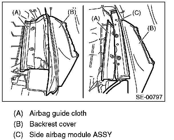 - If the backrest cover is not installed securely, the side airbag module may not be deployed properly, therefore keep strictly to the following procedure.