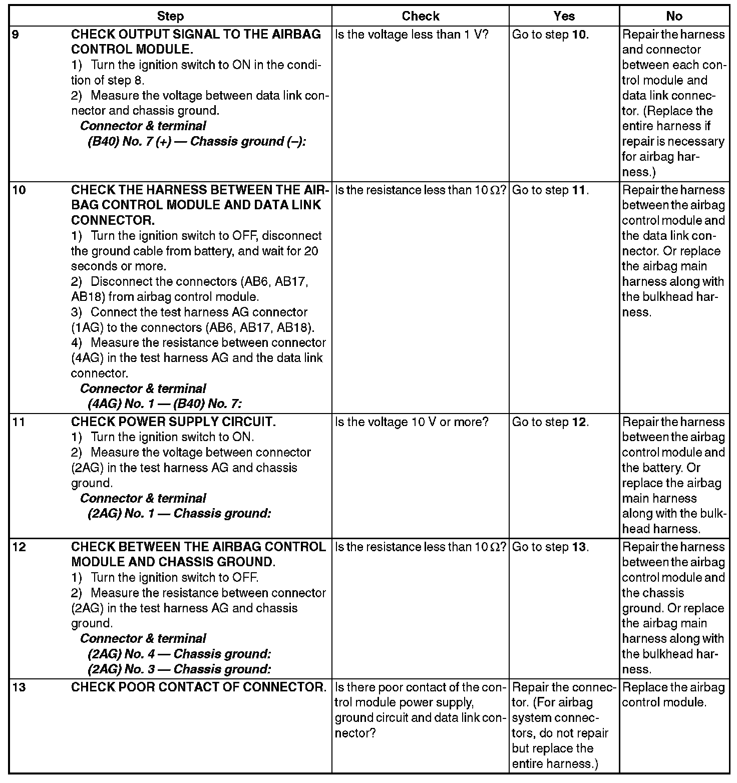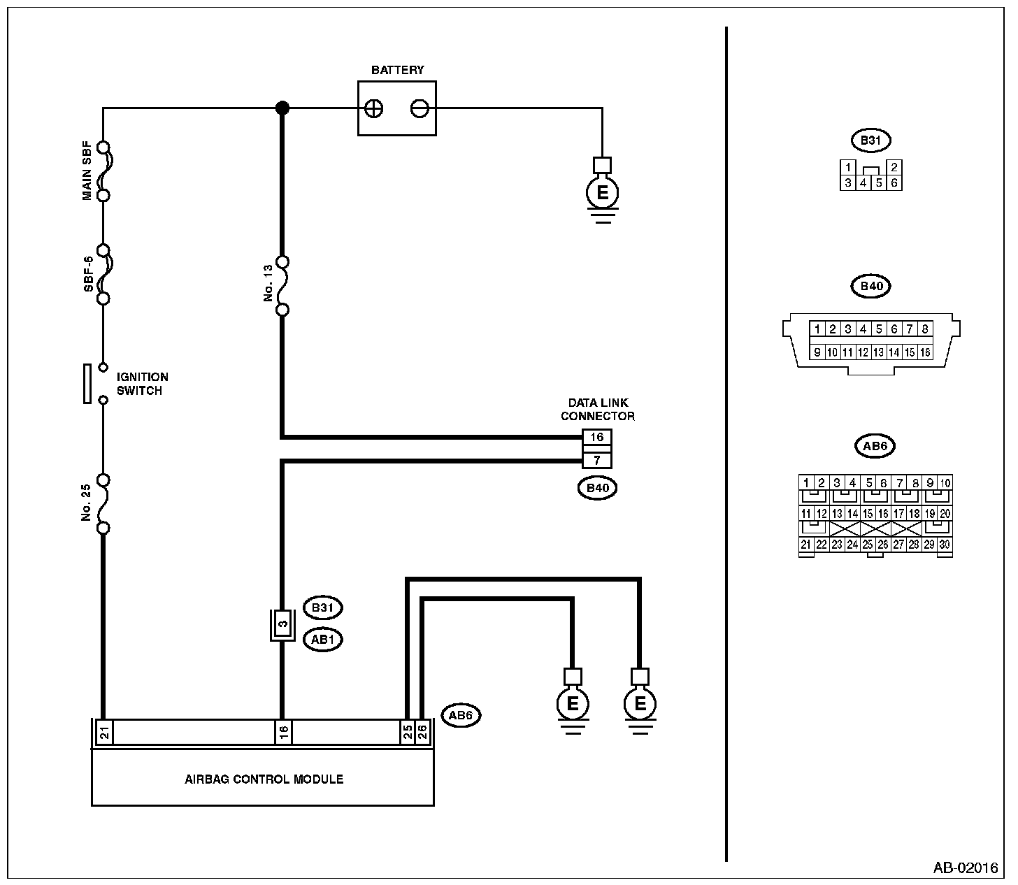 - For details concerning DTCs, refer to List of Diagnostic Trouble Code (DTC). Airbag Diagnostics