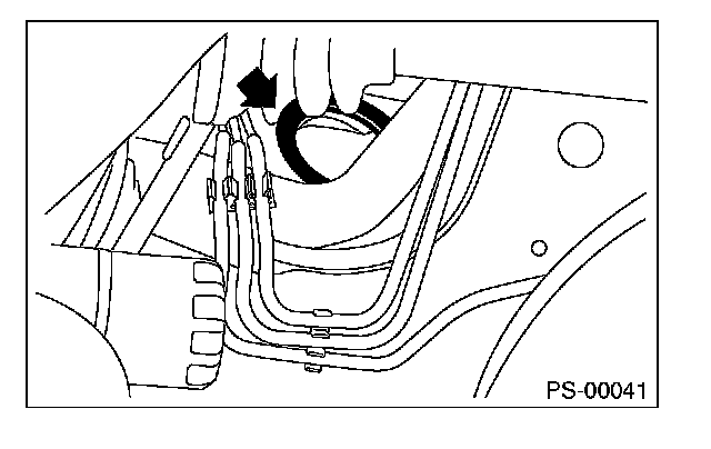 2) Insert the end of the steering shaft into the toe board grommet.