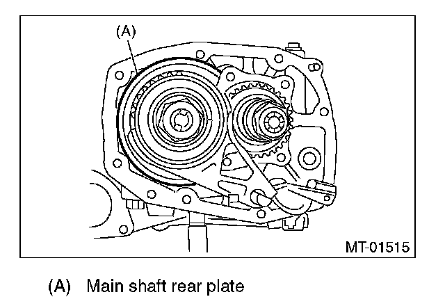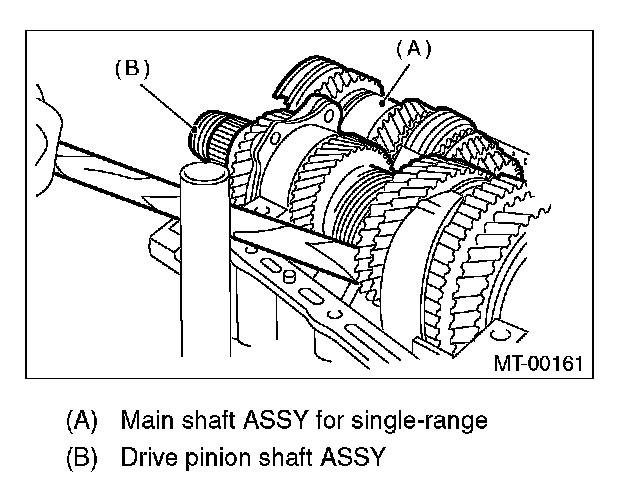 3) Install the main shaft assembly for single-range. Install the transmission case knock pin into the knock pin hole of needle bearing.