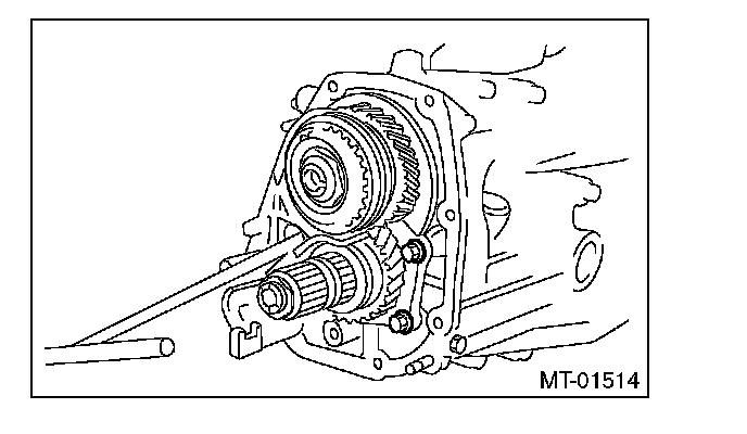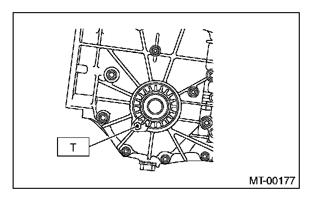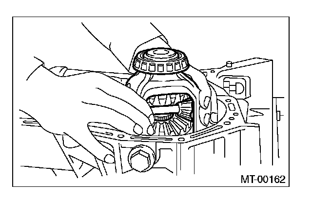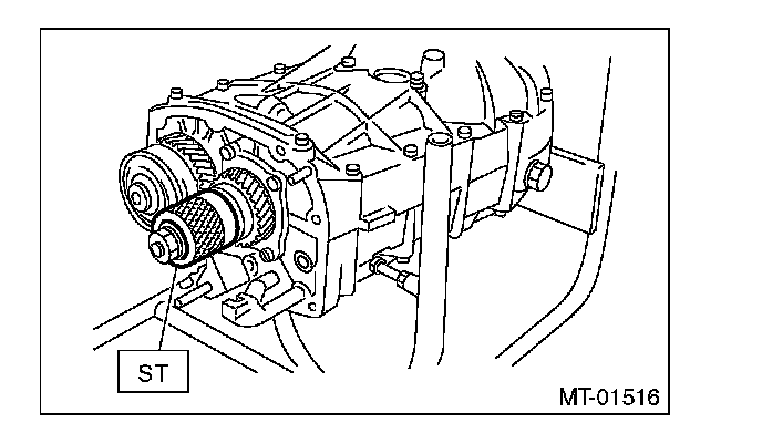 9) Place the transmission with the left side of case facing downward, and put ST1 on bearing cup.