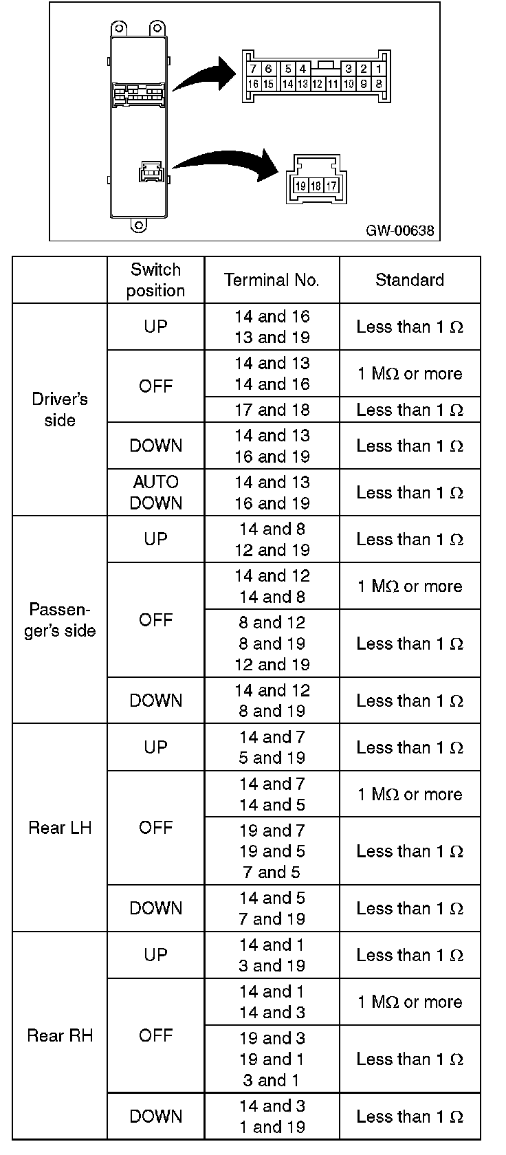 Power Window Switch: Testing and Inspection