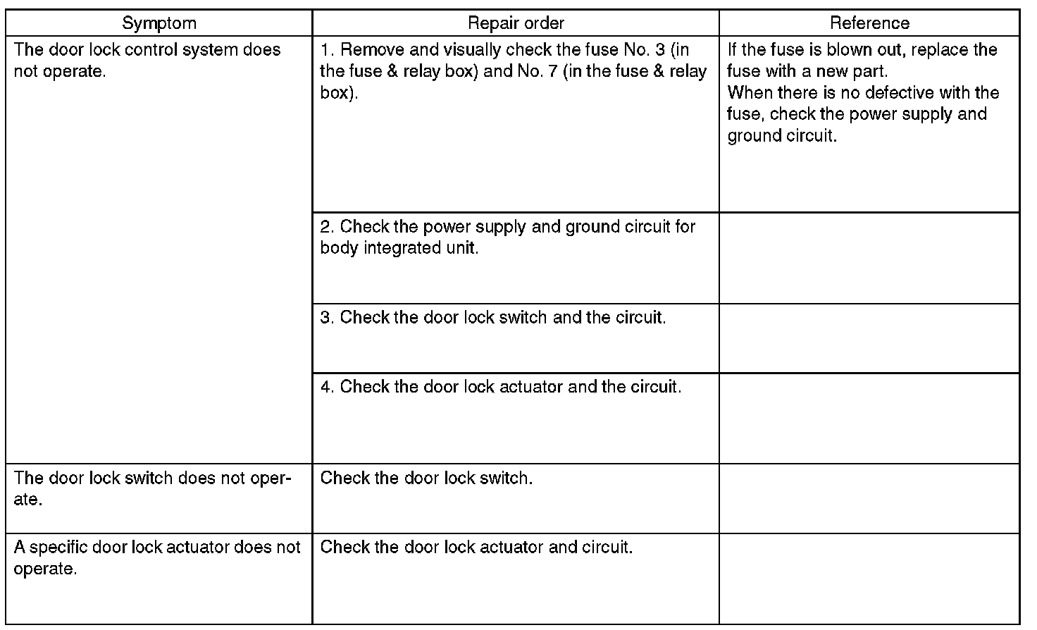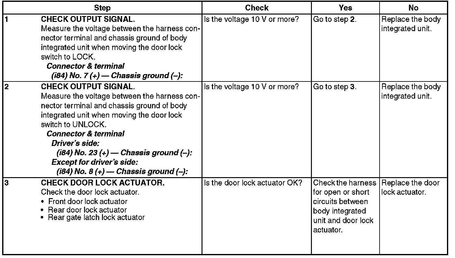 CHECK DOOR LOCK ACTUATOR & CIRCUIT