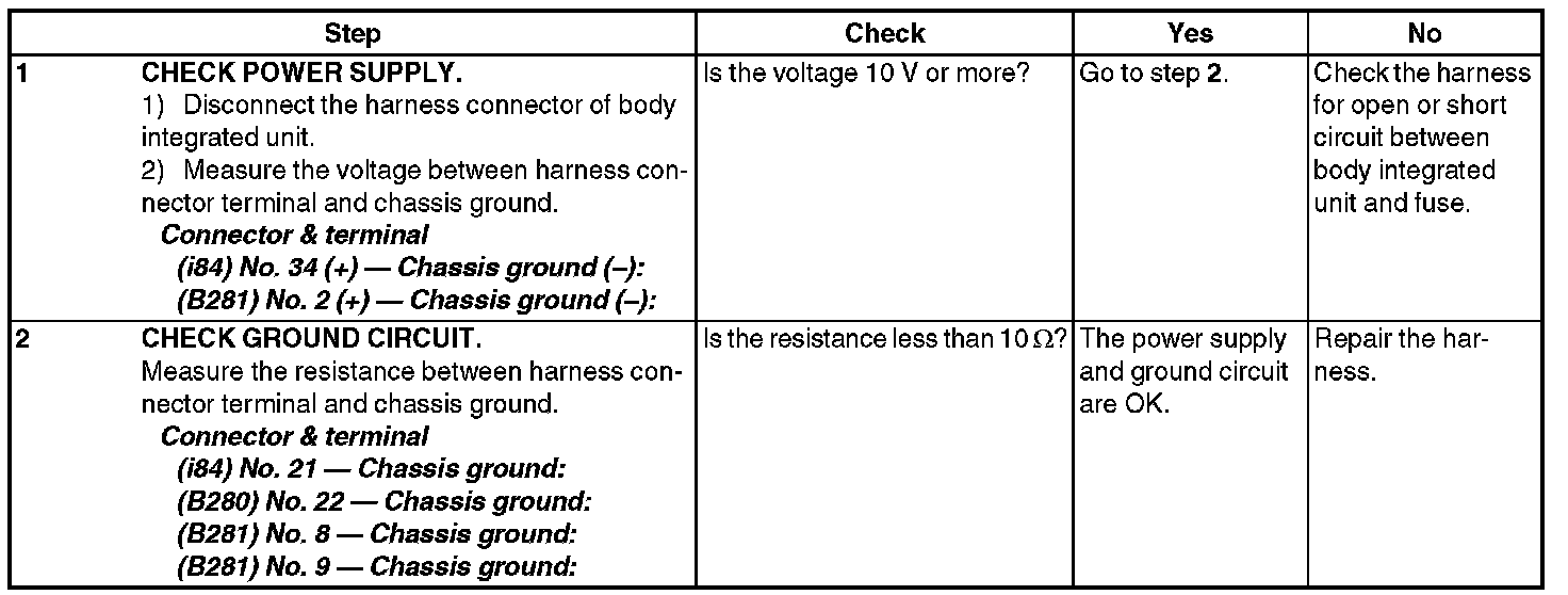 CHECK POWER SUPPLY & GROUND CIRCUIT