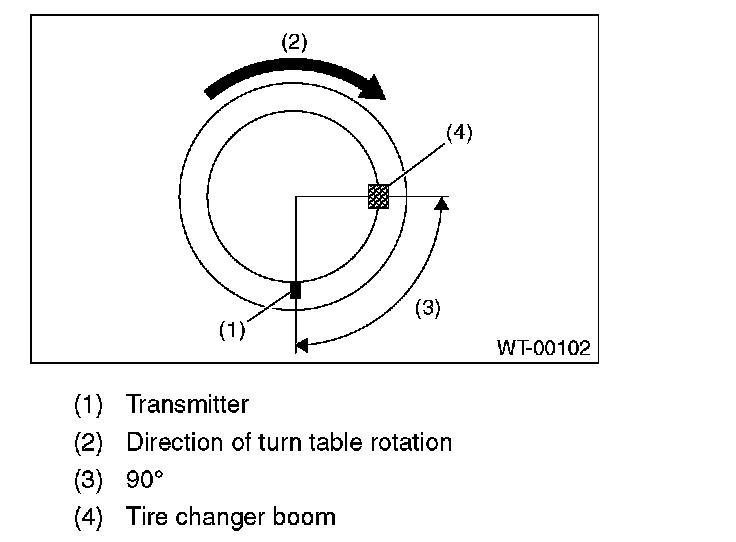 ^ To prevent damaging the transmitter, set the tire changer boom in the position as shown in the figure.