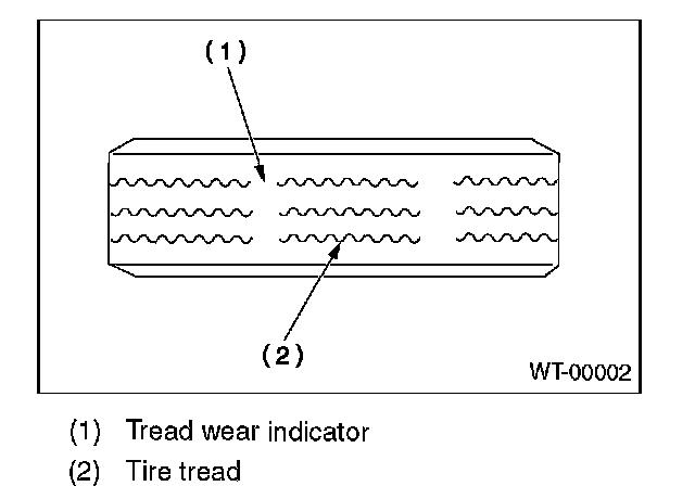 2) When the "tread wear indicator" appears as a solid band across the tread.