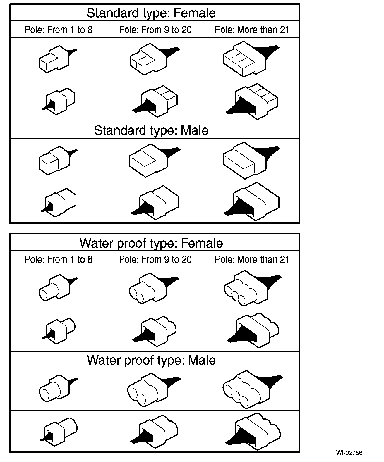 A number of connector symbols are used in each wiring diagram to easily identify the wiring harness connectors.
