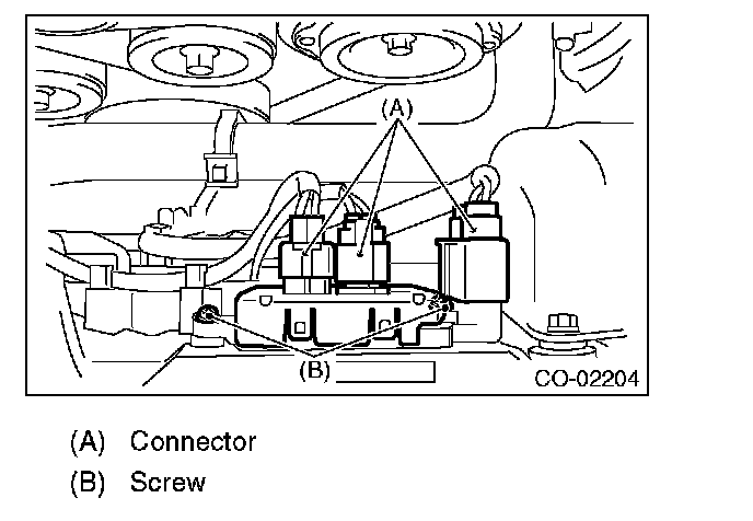 (2) Remove the screw which secures the radiator fan control unit.