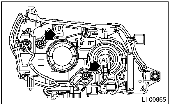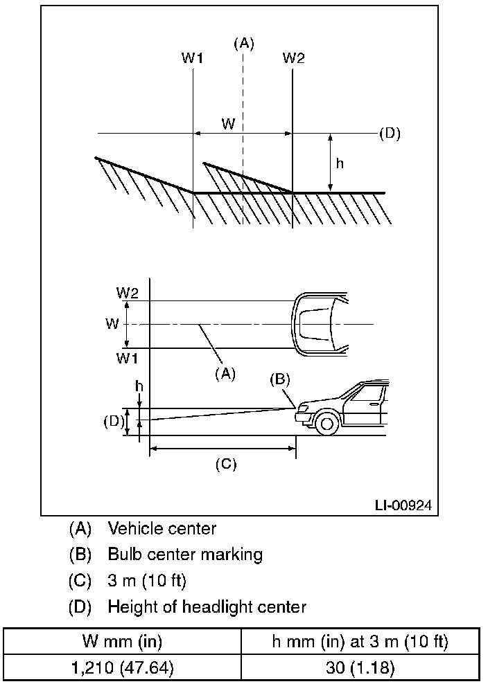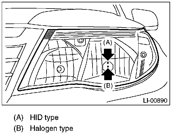 CAUTION: Check the bulb center mark on the inner side of the lens since the low beam bulb center will differ according to bulb shape.