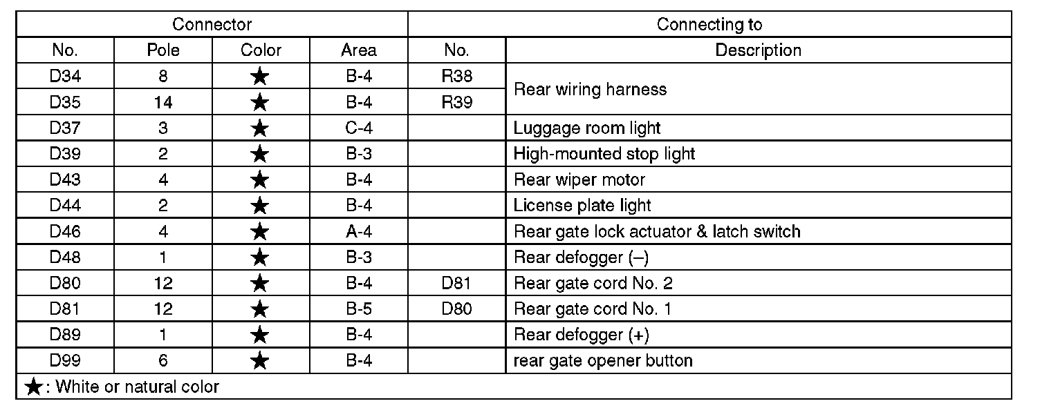 Rear Wiring Harness and Rear Gate Cord