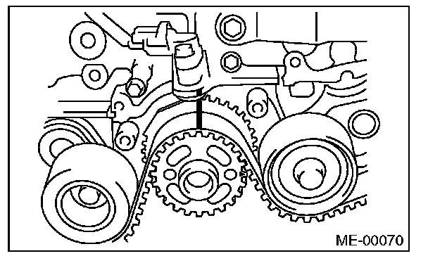 Make sure that the marks on the timing belt and sprockets are aligned.