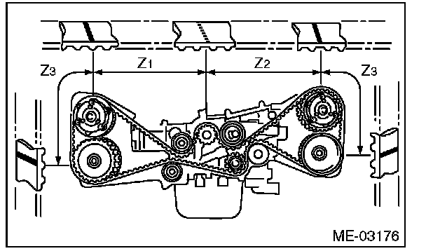 1) Check the timing belt teeth for breaks, cracks or wear. If any fault is found, replace the timing belt.
