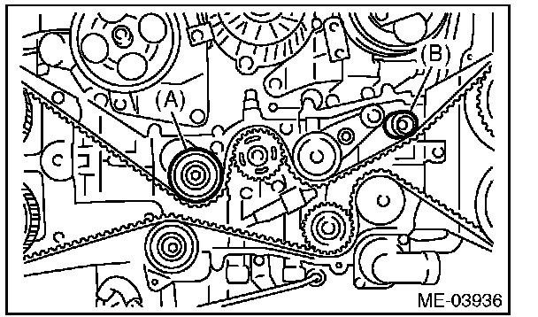 1) Remove the belt idler (A) and (B).