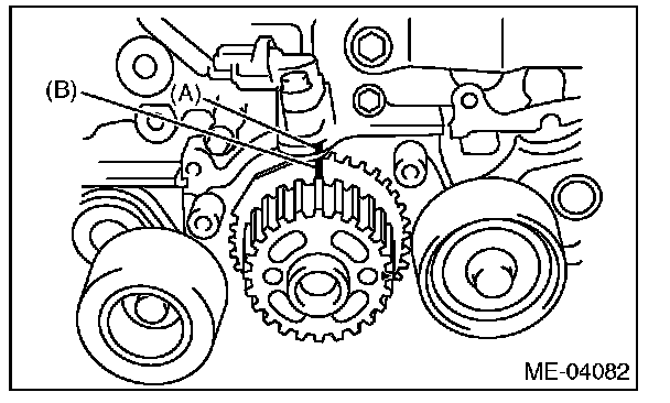 2) Align the mark (B) on crank sprocket with the mark (A) on oil pump.