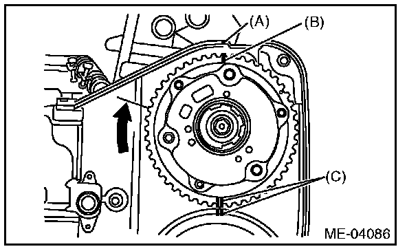 4) If the alignment mark or arrow mark (which indicates the direction of rotation) on timing belt fade away, put new marks before removing the timing belt as shown in procedures below.