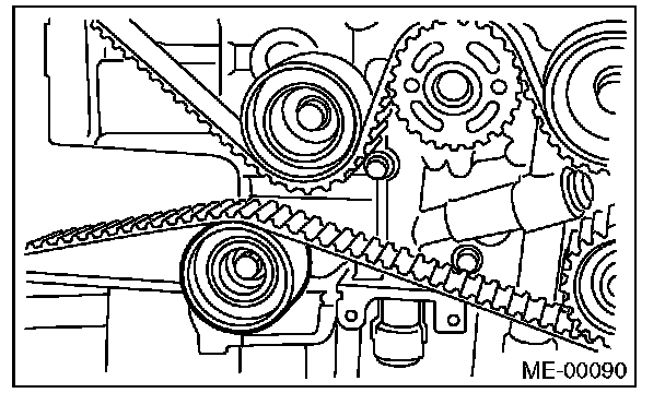 2) Check the condition on the back surface of the timing belt. If cracks are found, replace the timing belt.