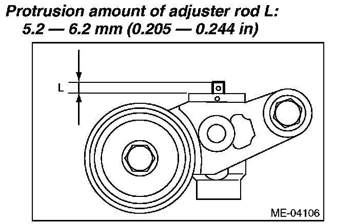 4) Measure the amount of adjuster rod protrusion "L" from the end surface of the cylinder. If it is not within specifications, replace the automatic belt tension adjuster assembly with a new part.
