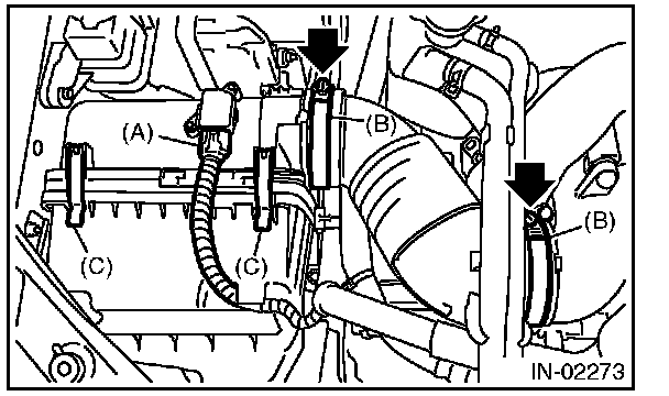 5. Loosen the clamp (B)which holds the air intake boot.