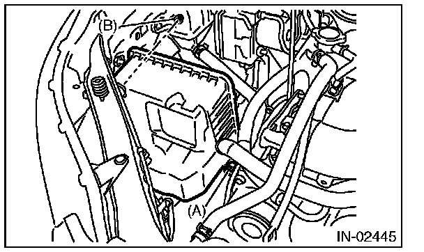 4. Install the clip (B) to the air cleaner case (front).
