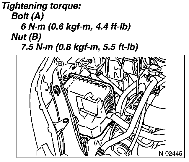 1. Install the bolt (A) and nut (B) which secure the air cleaner case (front) to the body.