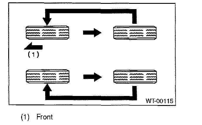 TIRE ROTATIONRotate tires periodically (12,500 km/7,500 miles) as shown in the figure, in order to prevent them from uneven wear and to prolong their life.